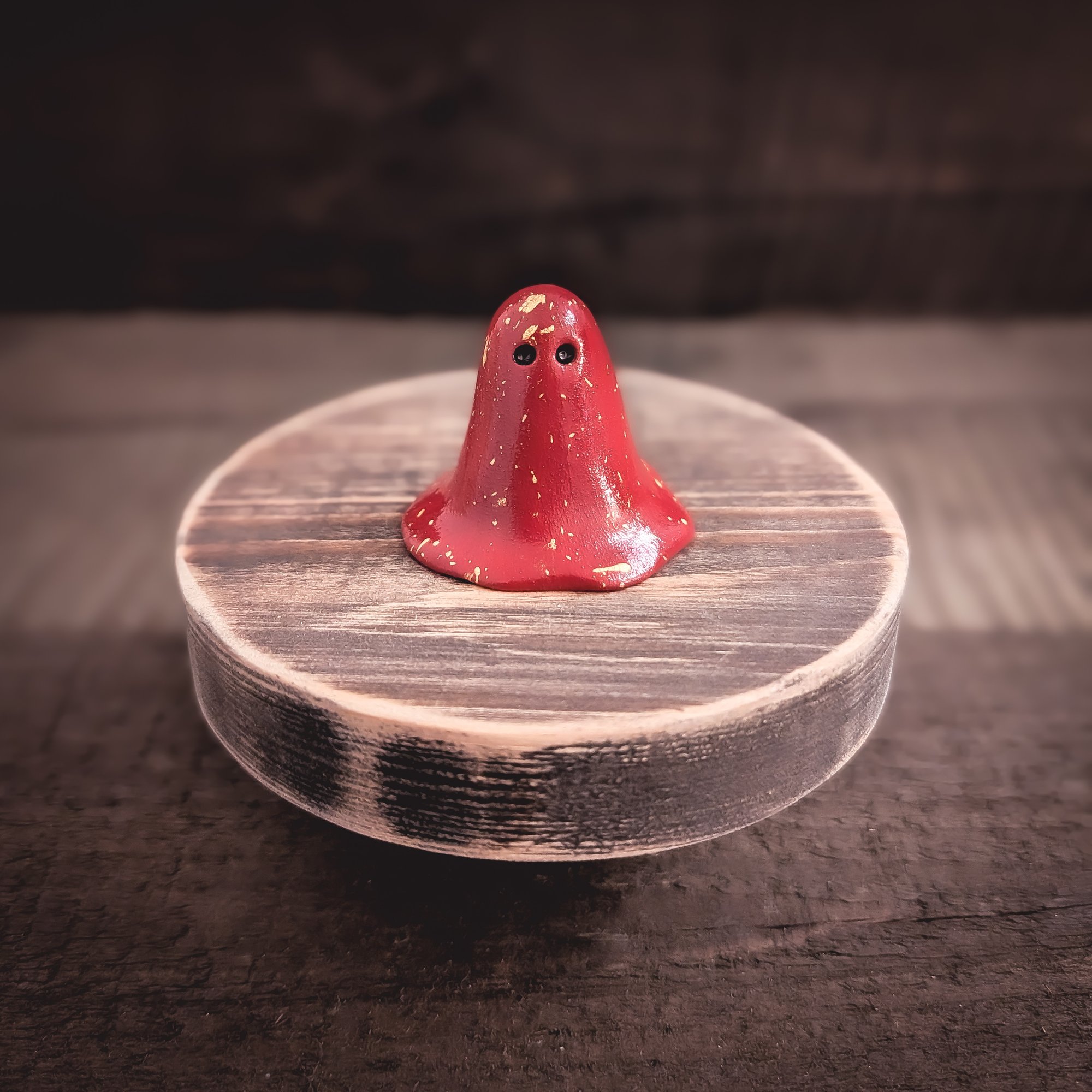 The ghost is hollow inside. Handmade with polymer clay. Colours may vary slightly depending on your screen. Any props used in the photos are not included.
